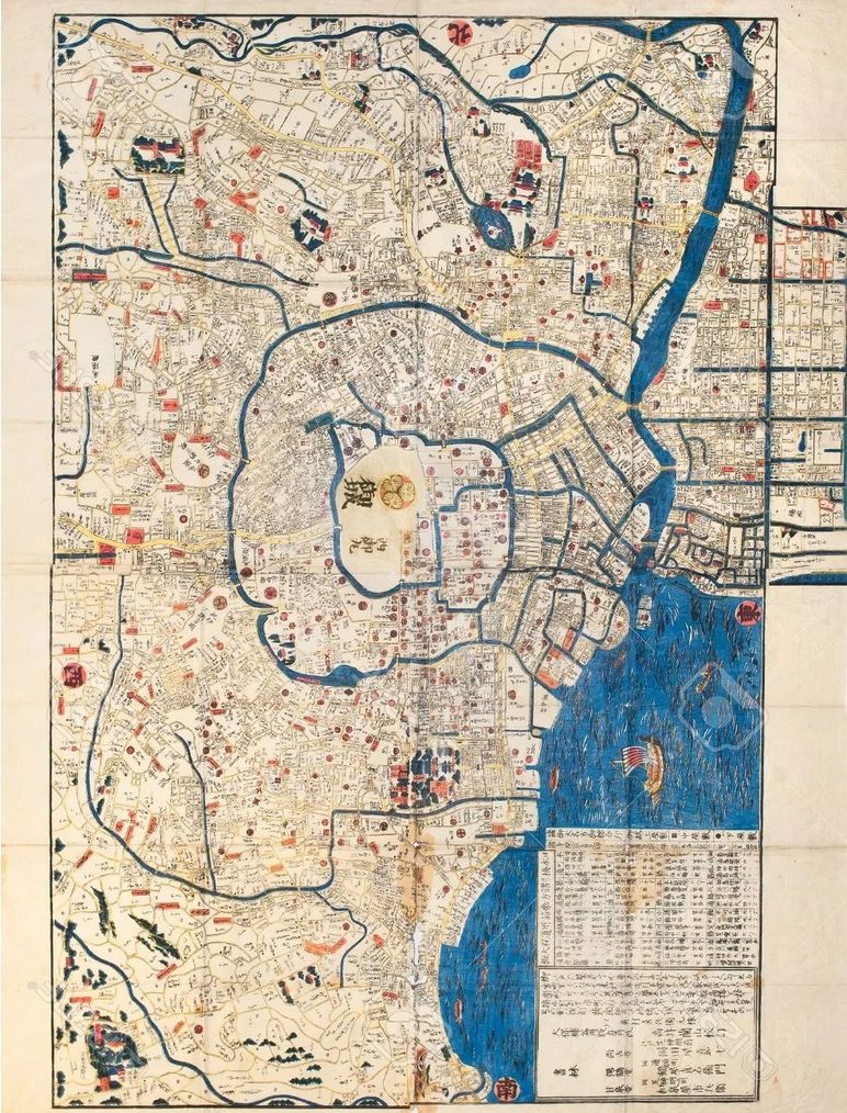 Image 2: Map of Edo era canal network in Tokyo, Japan c1850.